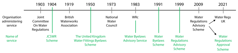Although Water Regs UK was only incorporated in 2008, water companies have been working together for over 100 years to help individuals and organisations comply with byelaws and water fittings regulations. This page contains a timeline of key events in the history of Water Regs UK.