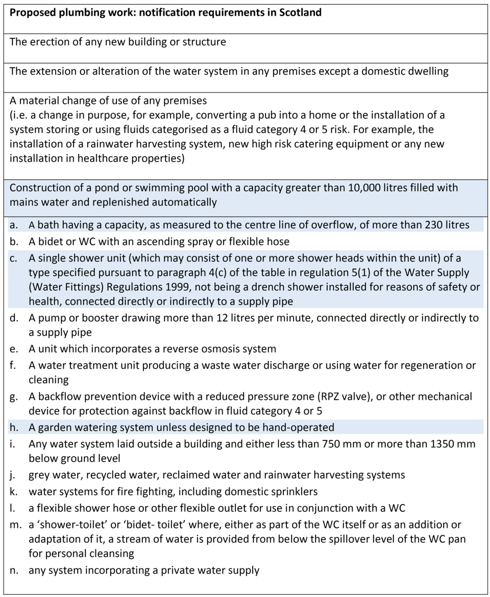 A material change of use is defined in the water fittings regulations in England, Wales and Northern Ireland, byelaws in Scotland.